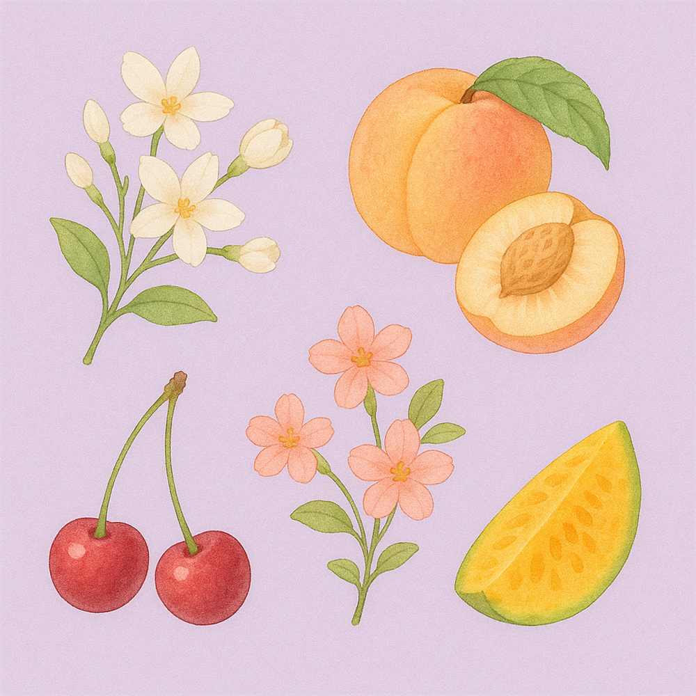 자스민, 플로럴, 백도, 체리, 열대과일, 실키바디